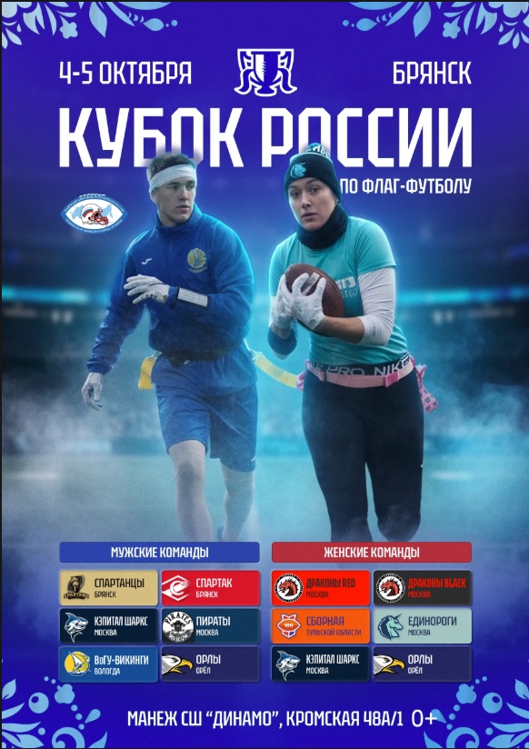 На ближайших выходных Брянск станет столицей крупных российских соревнований по флаг-футболу. В манеже СШ «Динамо» на улице Кромской лучшие команды страны сразятся за Кубок Россииу. Соревнования пройдут два дня — 4 и 5 октября.