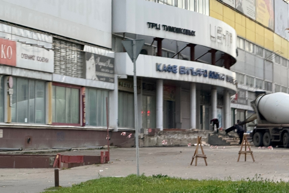 Горожане обратили внимание, что рабочие ремонтируют входную группу закрытого ТРЦ Тимошковых.