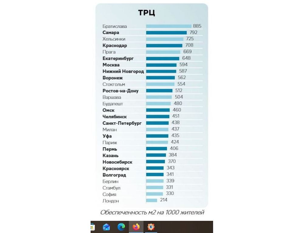 При этом российский рынок торговой недвижимости является одним из наиболее развитых в Европе: уровень обеспеченности торговой площадью (квадратные метры на тысячу жителей) сопоставим с показателями крупных европейских столиц.