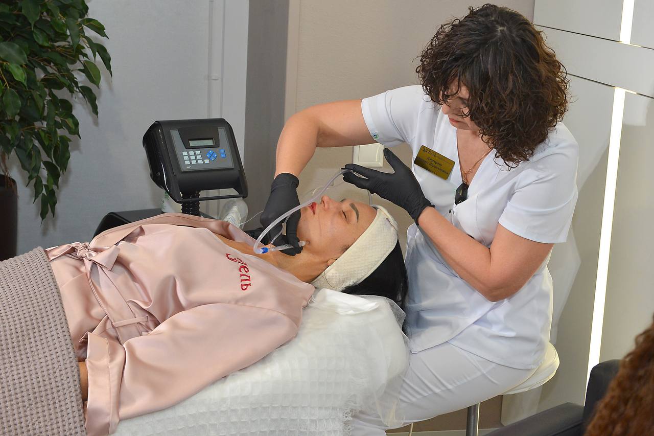 На встрече с финалистками конкурса поделились полезными советами, как использовать достижения современной медицины для сохранения красоты и молодости. Некоторые процедуры девушки смогли попробовать прямо во время встречи.