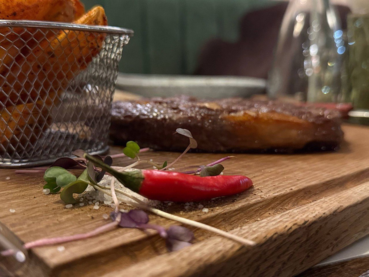 В субботу прошла презентация нового продукта от «Мираторга» — стейка vaca vieja (с испанского — «старая корова»). Продегустировать блюдо можно было в ресторане «Зеленый» и насладиться не только особенным вкусом мяса, но и оригинальной подачей от бренд-шефа заведения Михаила Ильюхина.