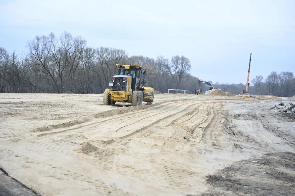 Стартовало строительство в прошлом году. За прошедшие месяцы рабочие подготовили основание и частично — свайное поле, ликвидировали древесную растительность и кустарники, сделали насыпь из песка. В настоящее время ведутся работы по устройству водопропускных сооружений, по выносу линий электропередач 110 и 10 кВ, сетей газоснабжения, водоснабжения и канализации.